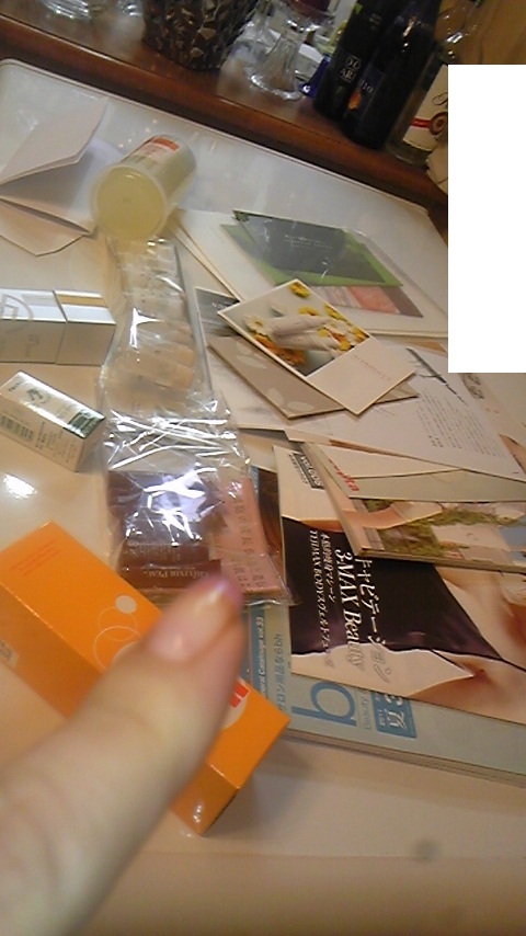 6dd08f7c.jpeg4a14236d.jpeg食べ過ぎ 帰宅9時前・・今朝届いていた サンプル化粧品&パンフレットに目を・・ 皮膚再生化粧品・・炭酸クレンジング・・夏疲れたお肌にビタミンC 大好きな アロマ[イランイランを 自宅で炊いて]ハーブティーと・・ 何しか  食べてるか 飲んでる店長・・(笑)   化粧品会社からのファックス 署名確認・・