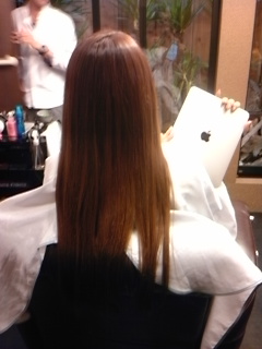 髪の毛 やっぱり女性は 綺麗でないと・・(笑) サラサラになりました・ 間 定員さんと 今度11月に店長セット予約している、髪の毛アレンジ打ち合わせ・・ お店のアイパットを借りて 参考ドレスを見せながらイメージを・・(笑)